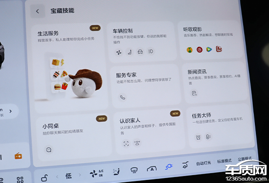 车机系统的主页面采用“卡片式”布局,包括车辆信息以及导航地图等,屏幕利用率相当高。底部配有虚拟快捷栏,功能十分丰富,并且还融合了使用频率较高的空调控制按键,日常操作简单方便。