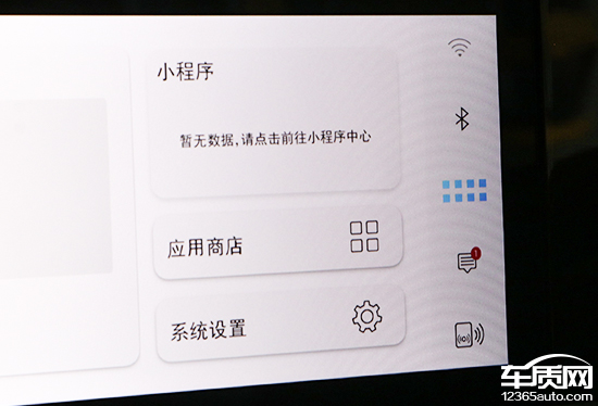 11.6英寸副驾娱乐屏的界面设计与中控屏基本保持一致,操作权限比较高,可以查看小程序以及进行系统设置。当然,其存在的最大意义还是为了满足副驾驶乘客的影音娱乐需求。屏幕左侧配有触控式开关按键,不用时可以将其关闭。