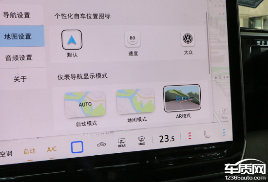 在地图设置界面内,用户可以针对仪表导航模式进行选择,系统提供了自动模式、地图模式以及AR模式。相比之下,AR模式的体验感最好,仪表盘内会显示车辆前方的实时影像,配合引导线及行驶信息,可以有效提升辨识效率。