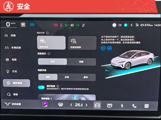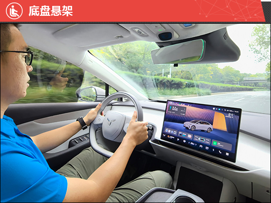 评测车搭载后置单电机,电动机总功率210kW,电动机总扭矩317N·m,官方0-100km/h加速6.8s。实际驾驶过程中,车辆起步十分轻快,经济和舒适模式下,加速平顺线性。切换至运动模式后,动力输出更加激进,推背感明显。