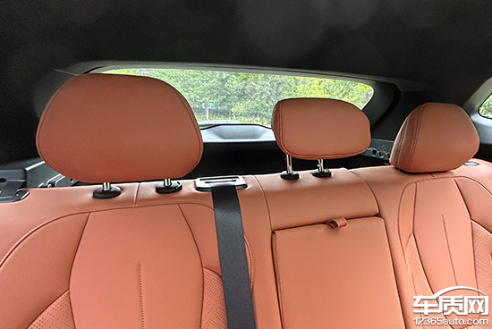 评测车后排座椅提供三个独立头枕,均支持上下调节,虽然中间头枕尺寸略小,但好在头枕填充物较为柔软,可以提供舒适的乘坐体验。