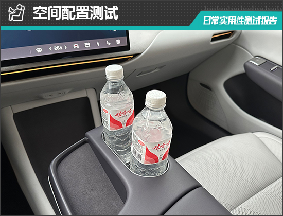 经过实测,评测车的储物数量较多,除了没有配备专属的眼镜盒外,其余物品均能找到合适的位置摆放,储物能力较为出众。