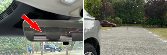 在前方视野测试中,我们采用高70cm的桩桶作为参照物,随后调整车距,直至在主驾驶位可以看到桩桶上沿。经过测试,桩桶与车头最终测得的数据为1.256m,在测试过的同级别车型中处于上游水平。