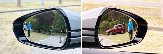 评测车的左/右外后视镜均采用双曲率镜片,实测左外后视镜视野范围为23.1°,右外后视镜视野范围为20.6°,两侧外后视镜视野范围均处于同级别中游水平。