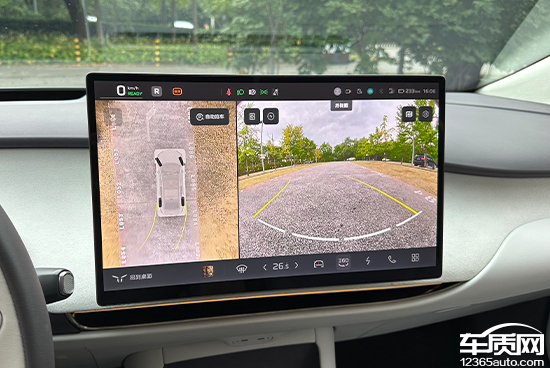 评测车配备了360度全景影像,可以多角度查看,方便驾驶员了解车辆周边情况。经实测,影像清晰度较好,车辆周围的畸变控制也比较合理,整体表现达到行业主流水平,可以在日常泊车过程中给驾驶者提供帮助。