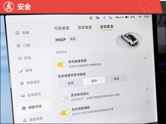 15.6英寸中控屏采用最新的XOS天玑操作系统,搭载3颗小鹏图灵芯片和1颗高通骁龙8295P芯片,总算力达2250TOPS。实测屏幕触控灵敏,系统运行流畅,没有出现卡顿情况。全场景语音交互系统支持四区域唤醒识别、语音连续识别、可见即可说等功能,通过语音指令可控制座椅功能、车窗升降等。此外,还能进行车外语音控车,包括泊出/泊入车位、开启/关闭后备厢、查询天气等均可实现。