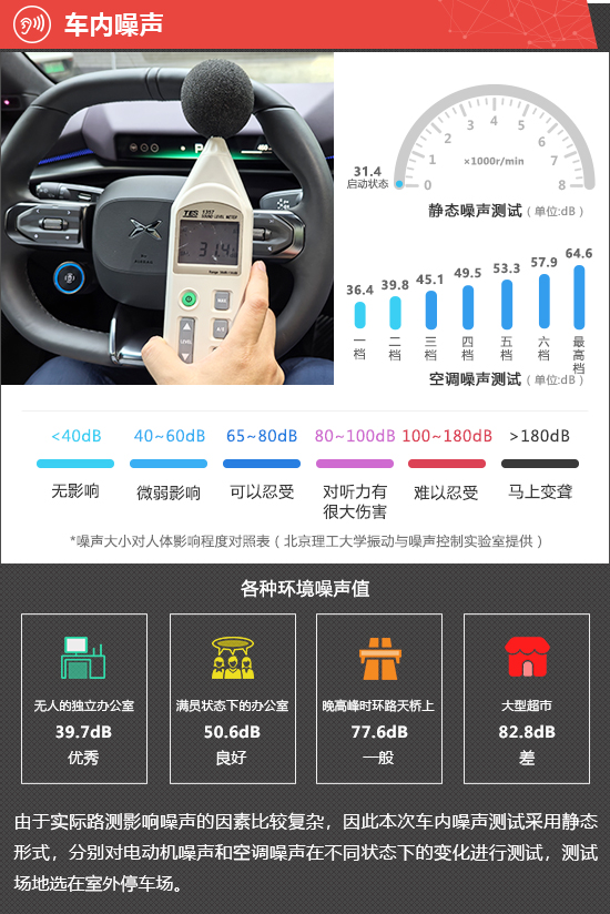 在静态噪声测试环节,2025款小鹏P7在启动状态下车内实测噪声值为31.4dB,在测试过的同级别车型中处于中游水平。