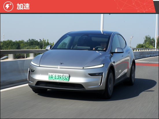 评测车搭载双电机四驱系统,具备4.5秒破百的加速能力。加速踏板调校细腻,动力响应直接且线性,带来“人车合一”的驾驶感受。运动模式下动力输出更加迅猛,推背感尤为明显。