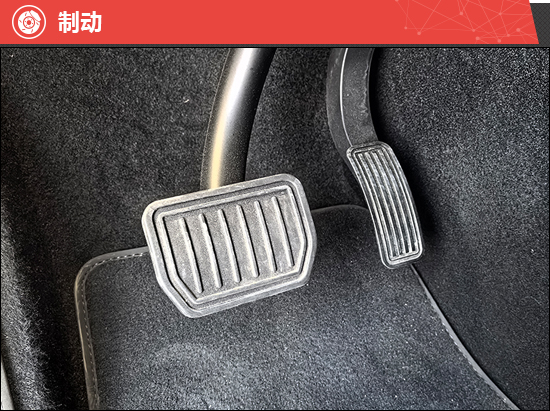 制动踏板行程适中,脚感偏硬,全力制动时车身姿态始终保持稳定,没有出现多余的晃动。前轮采用四活塞制动卡钳,搭配通风盘式制动器,制动性能出色,带给人十足的安全感。