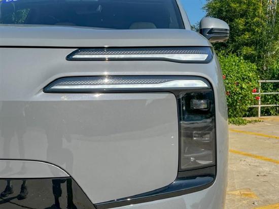腾势N8L前灯组采用分层式布局,标志性的平行LED日间行车灯造型细窄,与腾势N9的灯组有明显区别,两侧设置有竖向布局的大灯组,为远近光分体式的大灯,非常有腾势家族的观感。