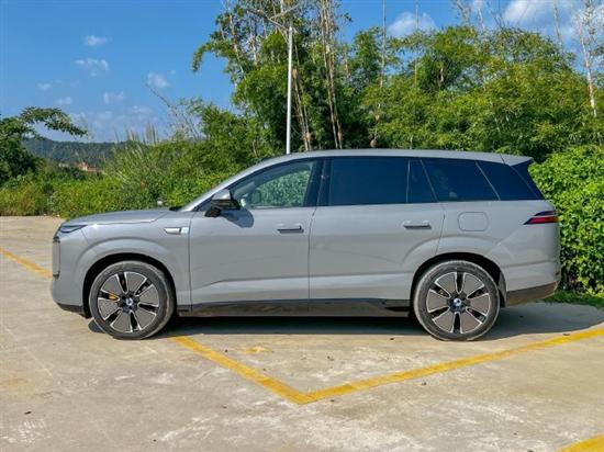 腾势N8L长宽高分别为5200/1999/1820mm,轴距为3075mm;比腾势N9车短58mm,宽少了31mm,高度矮了10mm,轴距短了50mm。但腾势N8L的车侧造型依旧方正魁梧,气场十足,而为了让车侧身同样带有车头一贯的设计感,车身的腰线和窗线也是非常平直且规整,ABCD柱完全做了黑化的视觉全隐藏,呈现游艇式的悬浮效果。