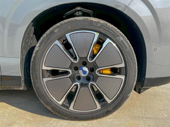 腾势N8L高配车型则是21英寸的轮毂,规格为265/45 R21,半封闭轮圈的配备显著增强了豪华的新能源气息,看起来也非常大气,配合明黄色大卡钳,整体视觉效果还不错,而入门车型用20寸的轮毂。