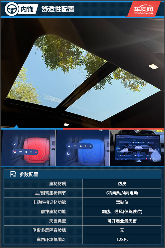 在舒适性配置方面,2025款示界06的表现恰如其分。前排提供了座椅加热功能,主驾驶座椅支持通风、记忆和舒适进入功能。同时,可开启全景天窗和前排双区自动空调等配置也没有缺席,对于一款主打经济实惠的家用SUV来说恰到好处。
