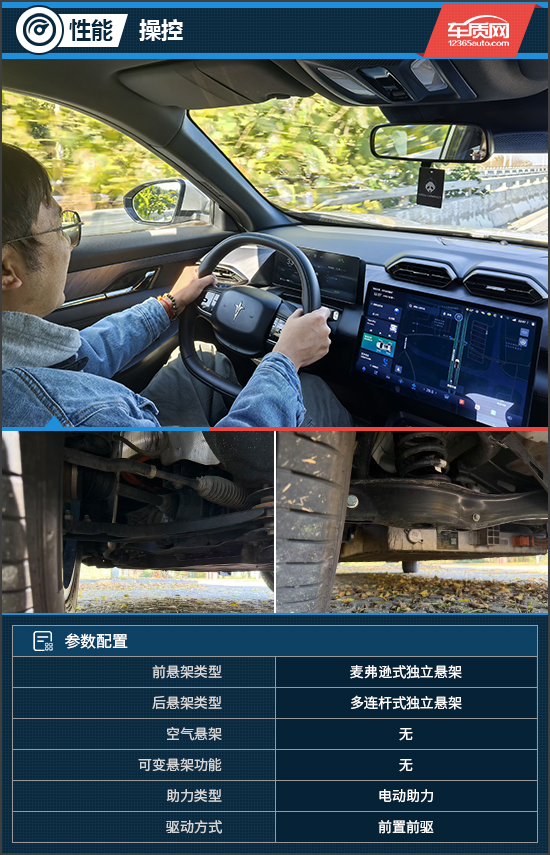 评测车配备了前麦弗逊式独立悬架+后多连杆式独立悬架的组合,搭配偏舒适的调校风格,在面对铺装路面细碎颠簸时可以高效过滤。其所搭载的E-CLDRive智控系统,以CLDR大师级冠军底盘调校为基础,融合东风三电技术,驾控体验实现了从燃油车到电动车的完美进化。