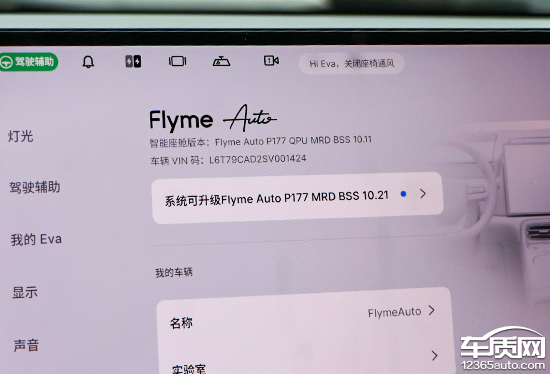 Flyme Auto 2是魅族与吉利联合开发的智能座舱操作系统,2025年8月20日由吉利汽车集团正式发布。系统集成星睿AI大模型,并搭载全球首个可大规模上车的超拟人情感智能体——Eva,支持端到端情感语音交互。桌面采用多层叠加算法以及法线传递技术进行3D渲染,配备无界Dock栏、深度自定义壁纸插件和动态Alive壁纸,应用大卡片及多任务小窗交互模式。评测车搭载的系统版本号为Flyme Auto P177 QPU MRD BSS 10.11,虽然已经接到了10.21版本的推送更新,但是涉及内容多以修复为主,与本次测试项目无关,考虑到时间问题以及网络因素,所以并未进行升级。