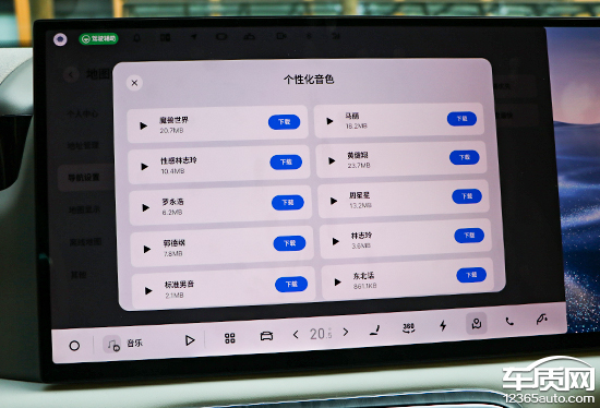 除中控屏外,32英寸AR-HUD增强现实抬头显示也能显示导航信息,用户可以根据喜好匹配内容显示。导航系统支持手机互联,页面内还带有对应不同应用的使用方法,细节设计十分贴心。个性化音色功能可以有效避免导航语音枯燥乏味的情况发生,选择非常丰富,下载语音包后就能使用。