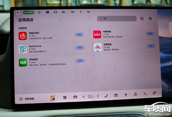 车机系统内置应用市场,APP数量所见即所得,抛开已经安装的部分应用,剩下的就连一个页面都填不满,属实是有些寒酸。不过,应用市场的界面设计还算合理,并且还配有搜索栏。虽然现阶段APP数量较少,但是也基本能够满足日常使用,而且随着适配工作的持续进行,相信未来会有更多APP的加入。