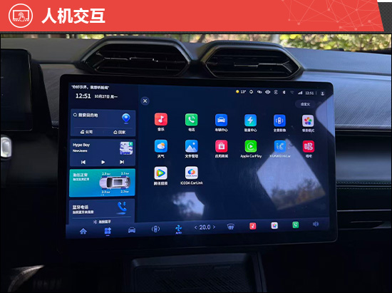 评测车搭载14.6英寸中控屏,内置高通骁龙8155芯片,车机系统界面设计合理,使用起来较为流畅,无明显卡顿现象。不过,其屏幕分辨率不高,显示效果有待提升。语音交互方面,支持语音免唤醒词、双区域语音唤醒识别、语音连续识别等功能。实测系统对指令响应迅速,识别率也较为准确。