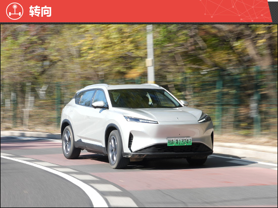 与市面上多数新能源车轻飘的转向手感不同,评测车的转向调校更趋中性,在兼顾操作舒适性的同时保留了良好的人车沟通感。虽然转向精度略有虚位,但整体依然轻松易控,符合家用取向。
