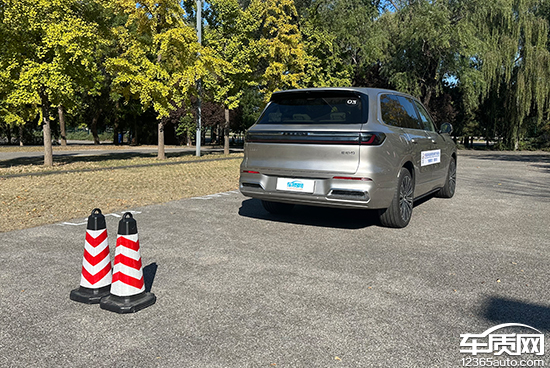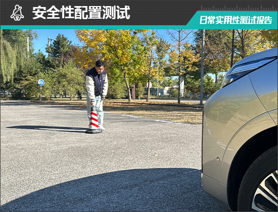 在前方视野测试中,我们采用高70cm的桩桶作为参照物,随后调整车距,直至在主驾驶位可以看到桩桶上沿。经过测试,桩桶与车头最终测得的数据为3.425m,在测试过的同级别车型中处于中游水平。