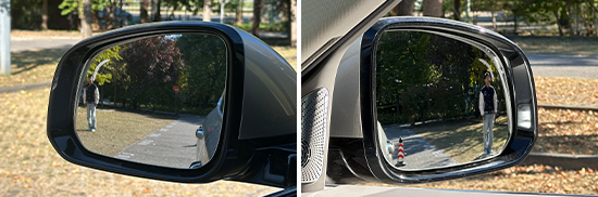 评测车的左/右外后视镜均采用普通镜片,实测左外后视镜视野范围为26°,右外后视镜视野范围为20.1°,两侧外后视镜视野范围均处于同级别中游水平。