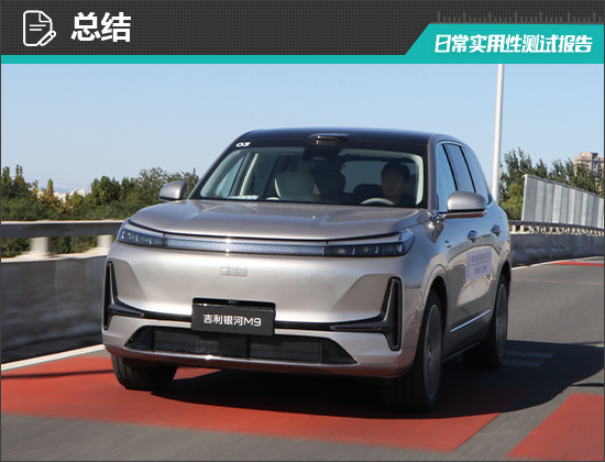 总体来看,吉利银河M9不仅车内空间以及综合续航方面表现出色,其日常实用性的测试成绩也可圈可点,例如宽泛的主驾驶座椅调节行程、优秀的智能语音交互等。不过,其还存在车内USB接口种类单一、前后方视野盲区略大等问题,有待优化。但总体来说,瑕不掩瑜,如果您近期正打算购买一台空间大、续航长,又具有出色实用性的新能源中大型SUV,那么吉利银河M9值得您重点关注。