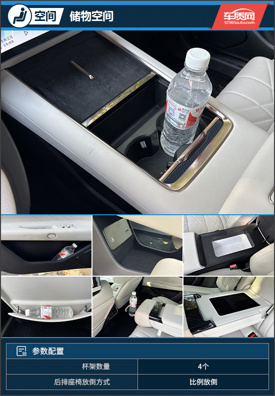 在储物表现上,评测车共设置了28处储物空间,中控台提供两个手机槽,后方为带盖板的杯架,下方采用掏空设计,容积十分可观。另外,车门把手采用封底设计,可放置票据、钥匙等随手物品,进一步提升了储物灵活性。