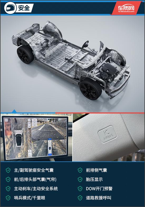安全配置方面,评测车搭载了丰富的主/被动安全配置。诸如主/副驾驶座安全气囊、前/后排头部气囊(气帘)、哨兵模式/千里眼、道路救援呼叫等均有配备,可以有效提升行车安全性。此外,CMA Evo架构配合笼式车身、2000MPa潜艇级A柱及十宫格电池防撞梁等设计,全方位提升了其碰撞安全性能。