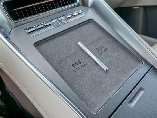 双辐平底的方向盘采用了设计,手感非常舒适,按键、滚轮操作十分顺手,电子怀挡继的设置,让中央扶手前方配备了双50W风冷快充,前部设有车身和动力控制的水晶拨杆,操作更加安全便捷。