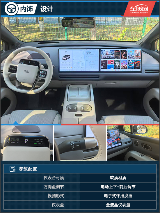 来到车内,评测车采用简约舒适的内饰设计风格,触手可及的地方多为软质材料,方向盘使用皮质材质包裹,质感细腻,舒适体验出众。