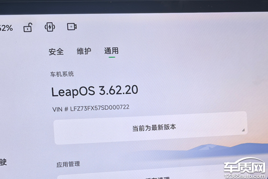 评测车搭载Leapmotor OS车载智能系统,系统平台官方暂未公布相关信息,版本号为LeapOS 3.62.20,后期可持续通过OTA进行升级。实测中,这套系统的启动速度非常迅速,解锁后打开车门,屏幕就能自动点亮并直接开启,上车后无需等待便可操控车机界面。