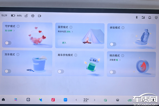 此外,评测车支持守护模式、露营模式、洗车模式等多种场景模式。以守护模式为例,需在车辆电量高于20%时开启,此时车辆会锁车下电并保留空调开启。同时,在零动空间当中用户还可以自行创建场景,像系统预设好的智能除味、弹射模式也非常实用、有趣。