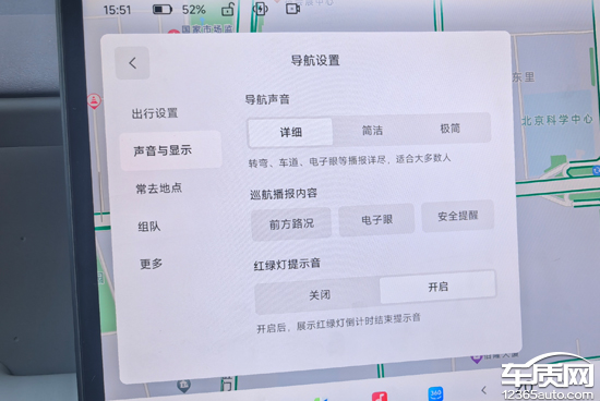 地图设置界面简洁明了,内容包含出行设置、声音与显示、常去地点等,设置中,用户可以灵活设置路线偏好、避开限行、导航信息播报丰富程度等。略有遗憾的是,地图导航暂不支持多种语音选择和AR实景导航。