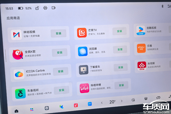 评测车车机内置应用商店,支持软件自定义安装,不过实际测试当中可下载的APP种类并不算多,好在车机自带的APP基本能够满足多数人的日常需求。