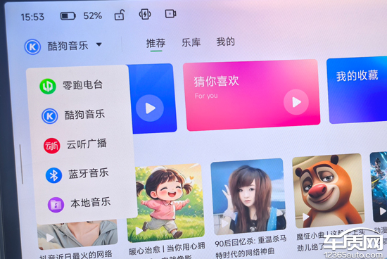 评测车仅提供网络在线音频,除云听广播,还有品牌自有的零跑电台,音频内容涵盖面也比较广。此外,还有酷狗音乐、蓝牙音乐、本地音乐等不同音源可供选择,满足用户多元化的音频收听需求。