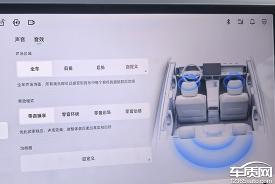 值得一提的是,评测车配备扬声器数量达到12个,随时随地都能提供给用户一场听觉盛宴。如果对音质有更高要求,还可以根据喜好调整声音、音效,声场区域和音效模式均可自由调整,甚至在自定义选项中用户还能从网络中下载更具专业性的音效安装包。