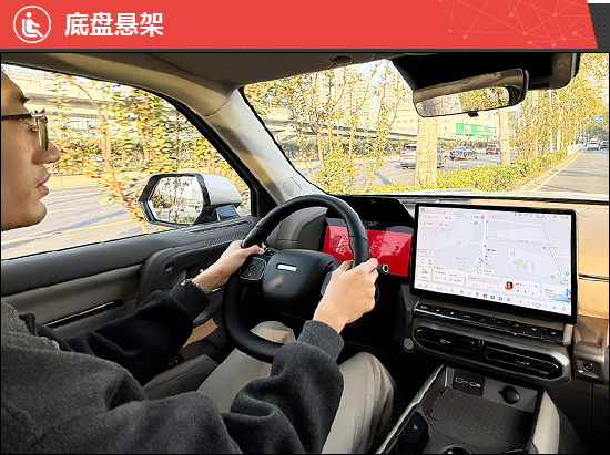 底盘采用前麦弗逊式和后多连杆式独立悬架的组合,由于电池组的加入,车辆重心显著降低,高速巡航时底盘贴地感更强,行驶稳定性不错。悬架系统对于井盖、桥梁接缝等颠簸处理干脆利落,通过减速带时虽然车身起伏较大,但余震控制合理。