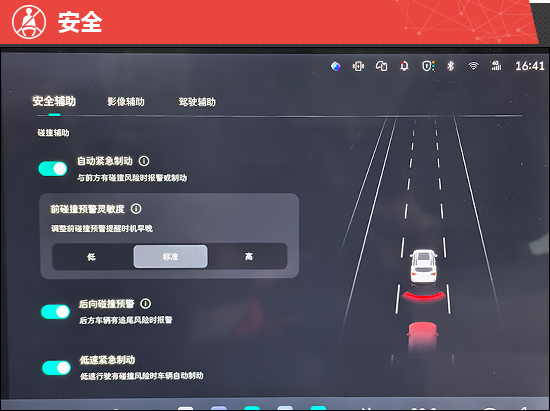 评测车搭载L2级辅助驾驶系统,采用毫米波雷达+单目摄像头融合方案,自适应巡航跟车过程中加减速线性,无突兀感,跟车距离支持多档调节,最近档位与前车间距适中,不容易被其他社会车辆加塞。不过,该系统无法识别信号灯,起步需通过踩油门唤醒,跟车便利性略打折扣。