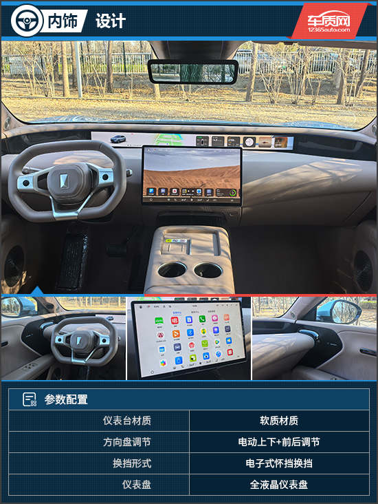 来到车内,评测车采用简约而富有科技感的内饰风格,触手可及的地方多为软质材料,方向盘、座椅均选装了真皮材质,触感细腻柔软。