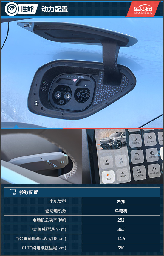 动力系统方面,评测车搭载后置单电机,电动机总功率252kW、总扭矩365N·m,匹配能量为82.16kWh的电池包,CLTC纯电续航里程650km。得益于超级快充技术,充电10分钟续航即可增加350km。