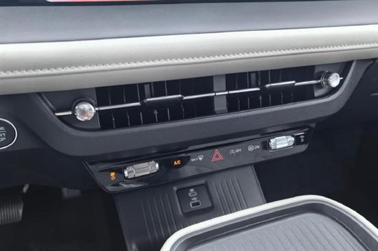 双区域空调全部的调节和面板都安置在了中控屏幕之内,上手操作也还算不错,屏幕下方除了空调出风口之外,还另外加入了触控的快捷空调按键、双闪警示按键以及两个质感不错的风量和多媒体音量的控制滚轮。