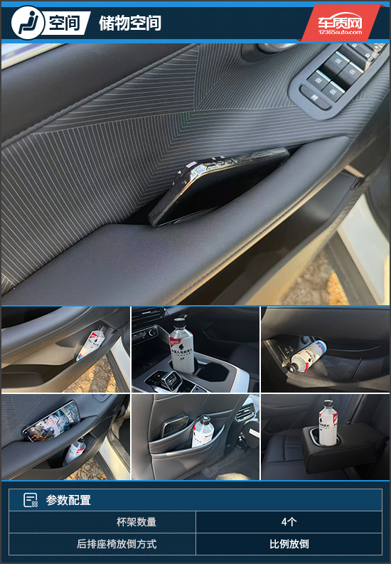 储物空间方面,布局合理且容积可观,前后排乘客的随身物品均有合适的地方放置。值得一提的是,主驾驶座椅后方提供了三个背袋,可以分别放置手机和水瓶等物品,有效提升了空间利用率。