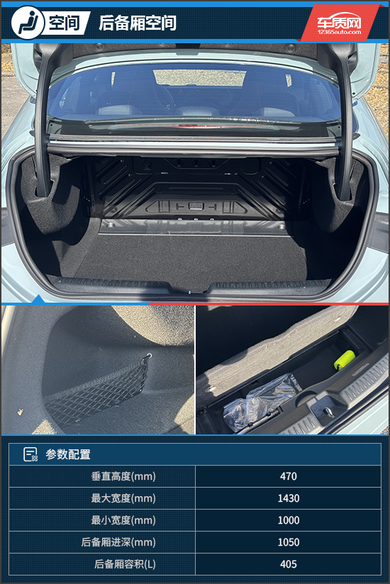 在储物表现上,评测车能够满足日常使用需求。中央扶手箱采用对开设计,纵深可观。中控台下方为掏空设计,容积十分可观,并设有USB充电接口。另外,前排座椅靠背设置有网兜,进一步提升了储物灵活性。