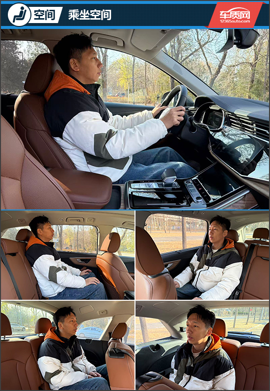 乘坐空间方面,身高181cm的体验者在前排有着较为宽裕的空间余量。但当第二排和第三排同时坐人时,乘坐感受就稍显局促了,尤其是第三排,不适合长时间乘坐。