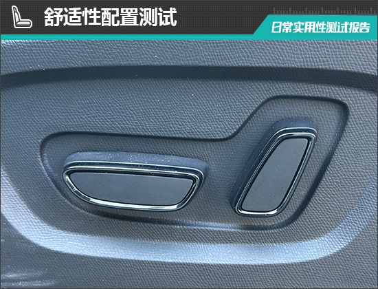 座椅方面,评测车前排座椅调节按键位于座垫侧面,调节按键位置合理,操作便捷。此外,评测车前排座椅还提供加热功能,舒适性表现较好。