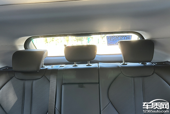 评测车后排座椅提供三个独立头枕,均支持上下调节,虽然中间位置的头枕尺寸略小,但是内部填充比较柔软,整体舒适性表现较好。