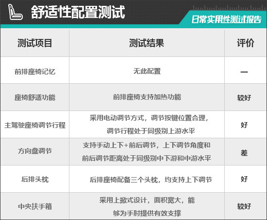 二、舒适性配置测试