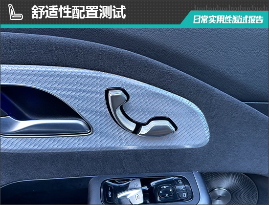 舒适性配置方面,评测车前排座椅调节按键位于两侧门板处,调节按键位置合理,操作便捷。同时,前排座椅配备3组电动座椅记忆功能,便利性表现较好。不过,评测车前排座椅仅配备加热功能,没有座椅通风等功能,稍有欠缺。
