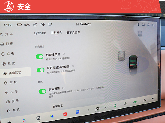 在内部感受评价中,评测车采用简约的“T”字形布局,线条干净利落。仪表台覆盖大量软质材料,手感细腻。座椅填充厚实饱满,在提供充分身体支撑的同时,也兼顾了良好的乘坐舒适性。不过,前排安全带位置无法调节,且座椅可调功能相对有限,对于不同体型乘客的适配度仍有提升空间。