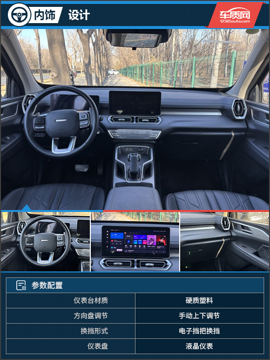 评测车座舱延续了大气开阔的设计基调,整体采用“T”字形布局,在材质选用上侧重务实与耐用。车内保留了大量实体按键,不仅涵盖空调等常用功能,还专门为四驱模式设置了独立按键,确保在复杂路况下操作直观可靠。功能性方面,换挡杆前方提供尺寸较大的置物平台,但不支持手机无线充电功能;后方的杯架设计巧妙,可通过调整插片位置设定大小,以适应不同规格的水杯等容器。